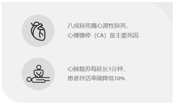 据统计,中国心脏猝死的总人数每年达到 54 万,居全球之首,每天约有 1500 人死于心脏骤停,而 90% 以上都发生在院外。对于心脏骤停的患者,如果 4 分钟内进行复苏,有半数可被救活,这便是急救的“黄金 4 分钟”。
